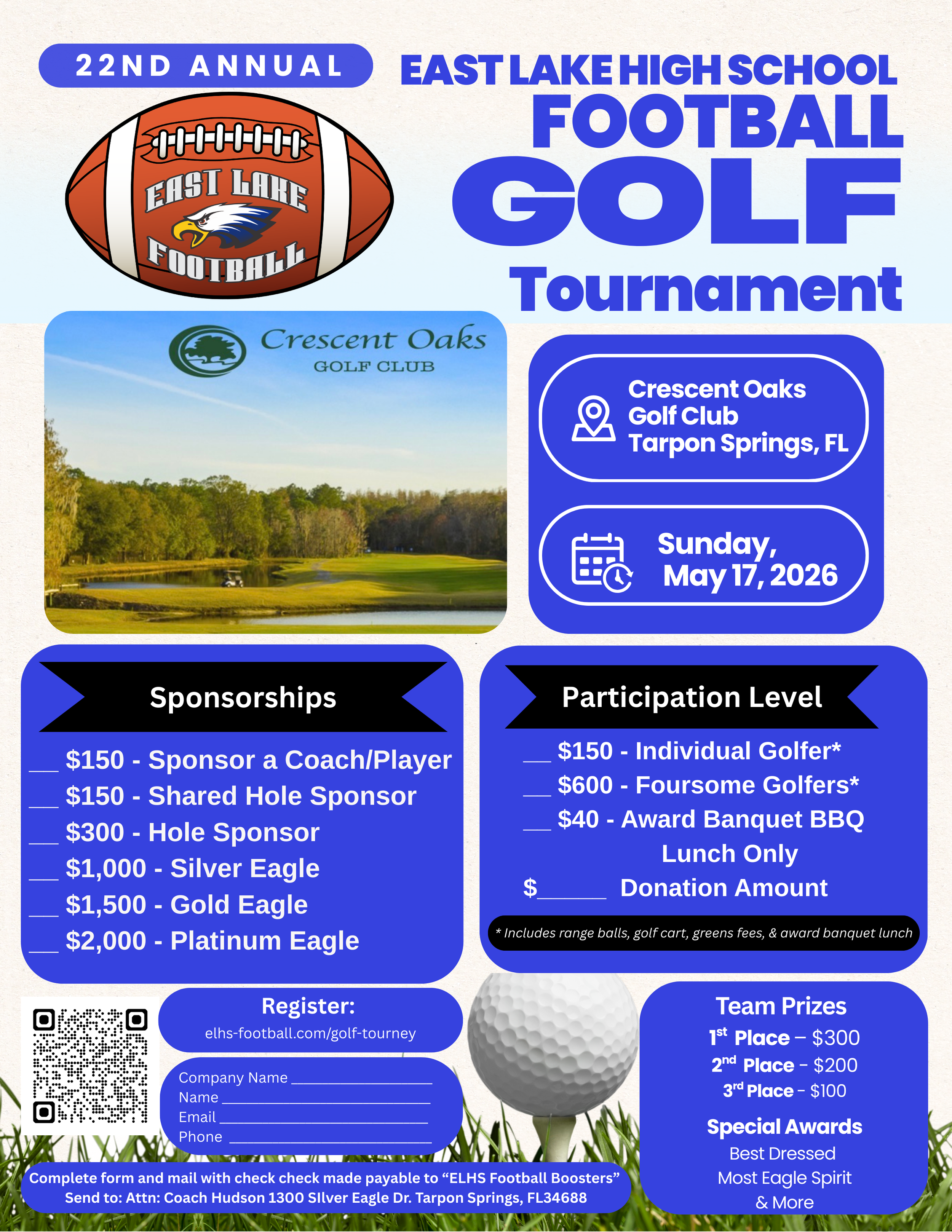 Complete Google Form by scanning the QR Code or via https://bit.ly/ELHS2025FootballGolfTournament