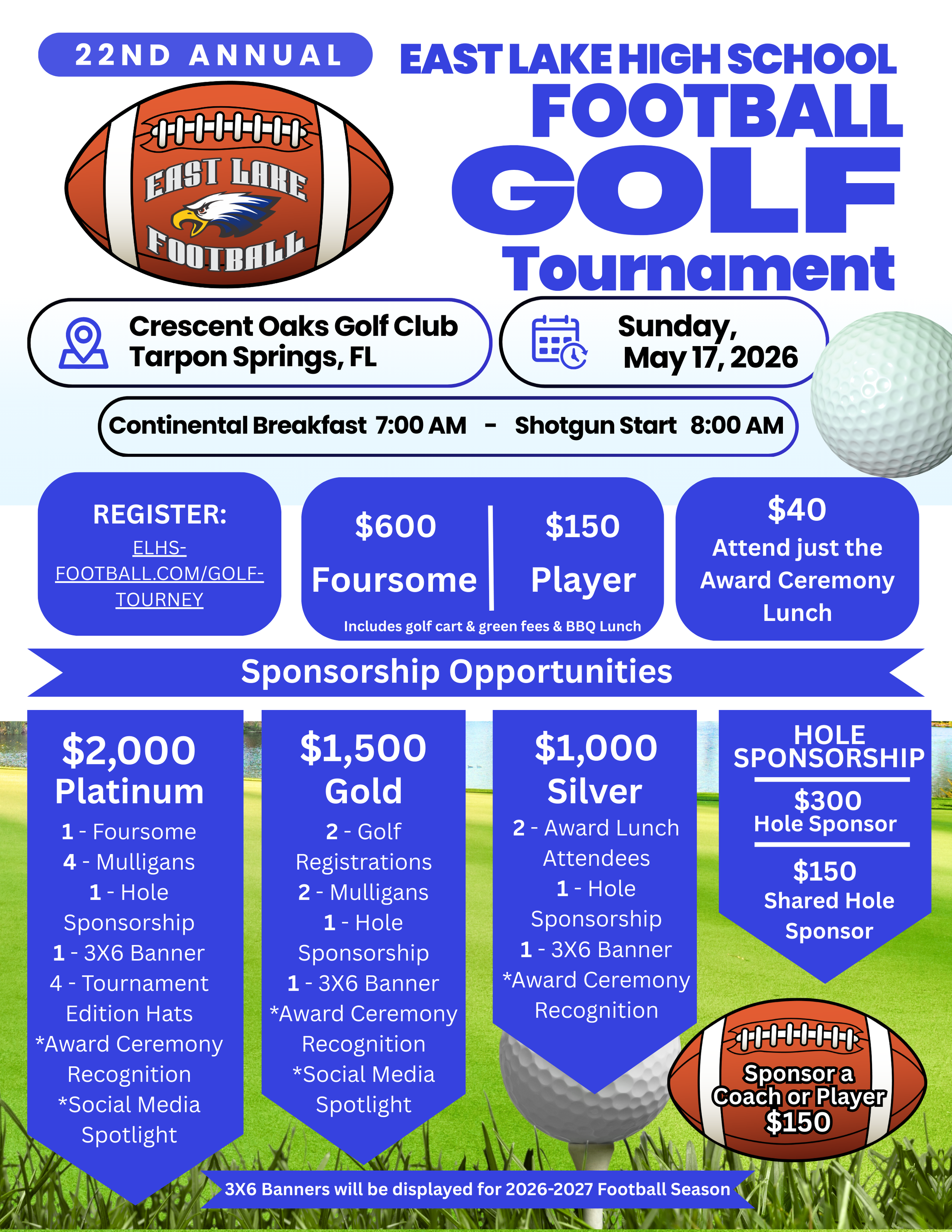 Join us for our 22nd Annual ELHS Football Golf Tournament
